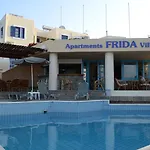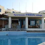 Оглянувши визначні пам'ятки Херсонісосу, гості можуть повернутися до цього готелю, щоб провести вечір за закусками і барбекю, які подають у лаунж-барі на території. У зоні бару є лаунж. Досить близько до готелю Frida Village розташований ресторан Rouga tou Mpaoula.